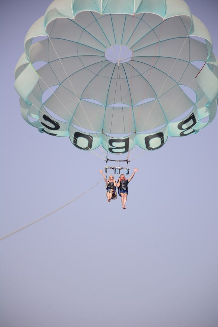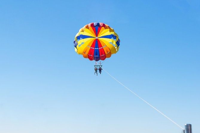 Lleve su experiencia en Sharm El Sheikh a nuevas alturas con nuestroemocionante aventura de paravelismo! Deslízate por encima del resplandeciente Mar Rojo y maravíllate con las impresionantes vistas panorámicas de la costa, las aguas cristalinas y la vibrante vida marina que se encuentra debajo.