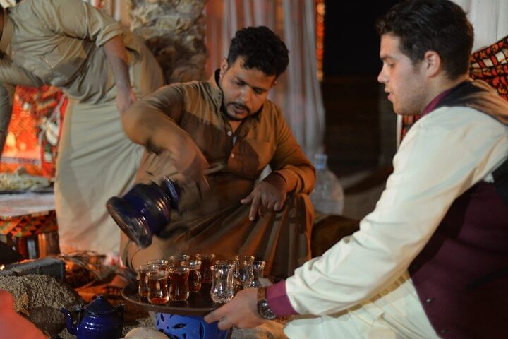 Savor a traditional Bedouin dinner, masterfully cooked beneath the sand, offering a truly unique culinary experience. Relax in a cozy Bedouin tent, sip aromatic tea, and enjoy the warm hospitality of the desert.