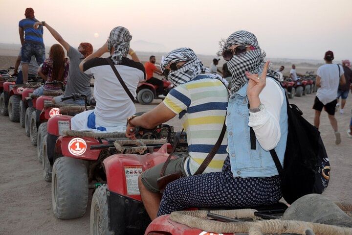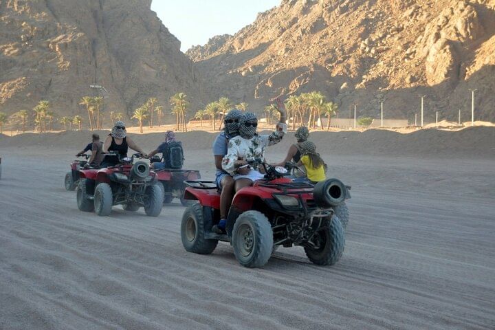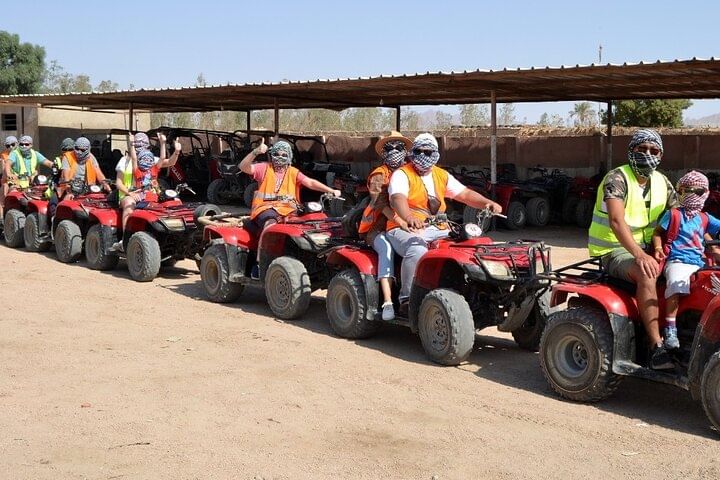 Whether it's just you or your group, set off on an exhilarating desert safari in Sharm El Sheikh, ideal for both families and thrill-seekers. This exclusive journey transports you into the heart of the magnificent Sinai Peninsula, connecting you with the area's raw beauty and rich traditions. Starting with a hotel pickup, you'll head into the desert for a dynamic biking adventure, led by seasoned professionals. En route to an authentic Bedouin Tent, you'll create lasting memories with the local children, enjoy traditional tea, and delve into the depths of Bedouin culture. More than just stunning vistas, this adventure provides a true cultural encounter, culminating in a secure trip back to your hotel, leaving you with unforgettable memories.