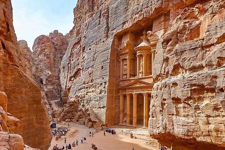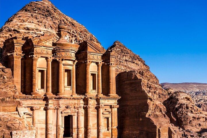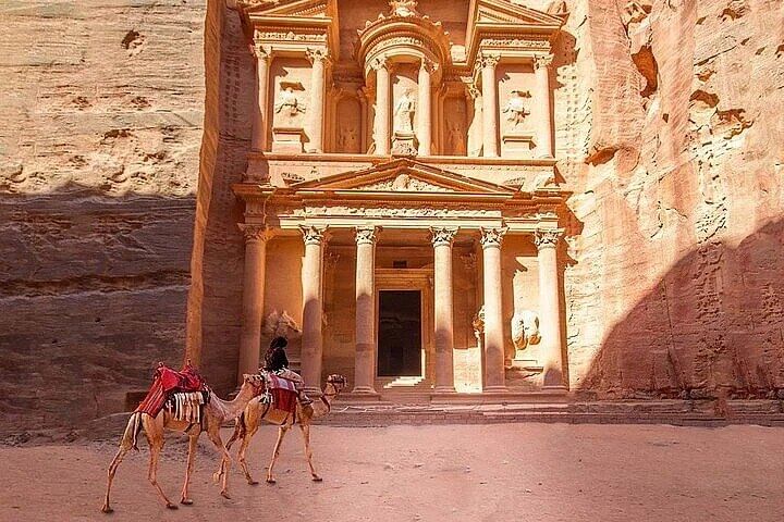 Şarm El-Şeyh'ten bir günlük gezide Petra'nın antik harikalarını keşfedin. Büyük Hazine, Kraliyet Mezarları, Renkli Kanyon'u ziyaret edin ve Akabe'de alışverişin tadını çıkarın. Feribot yolculukları, öğle yemeği, ve transferler dahildir.